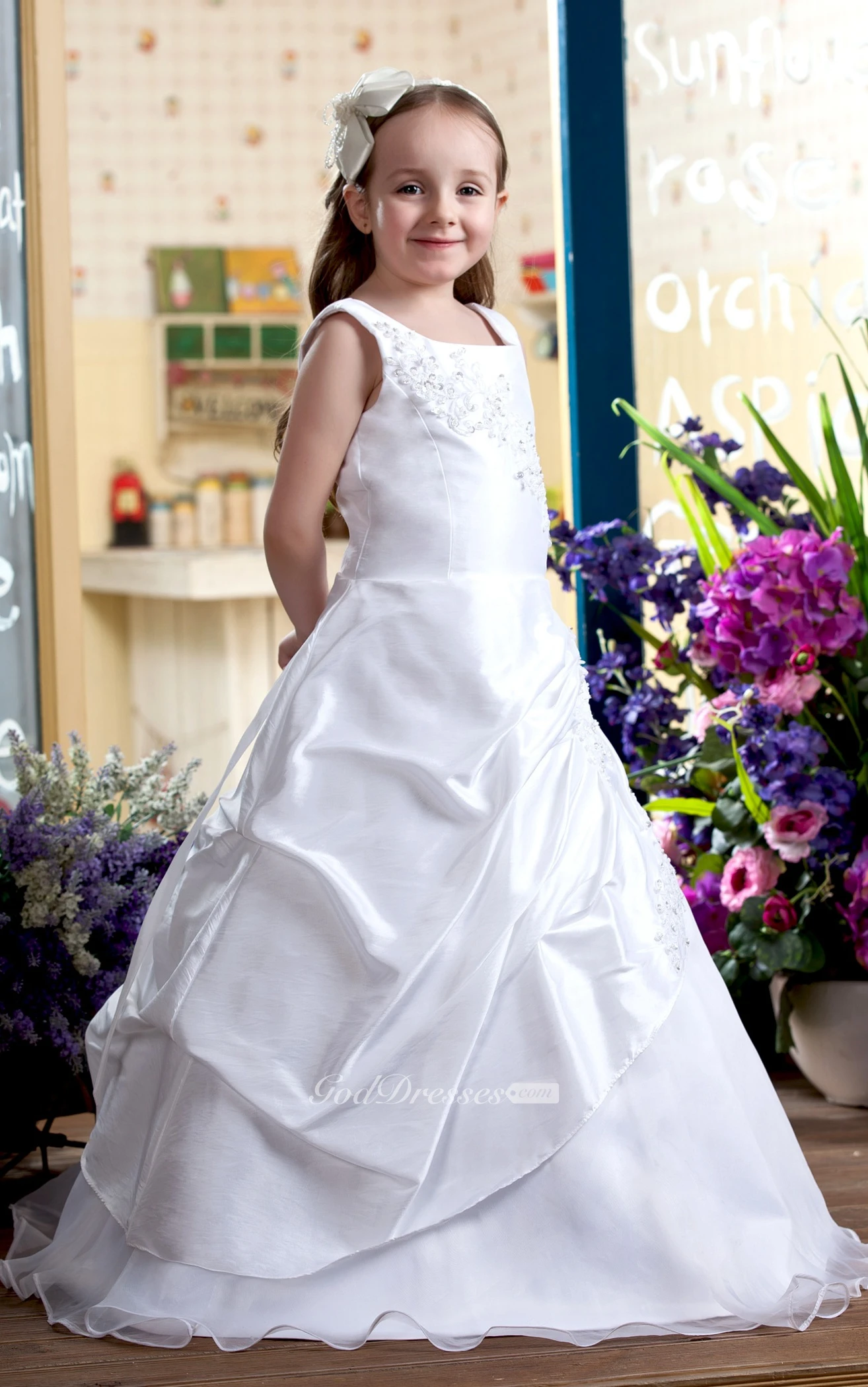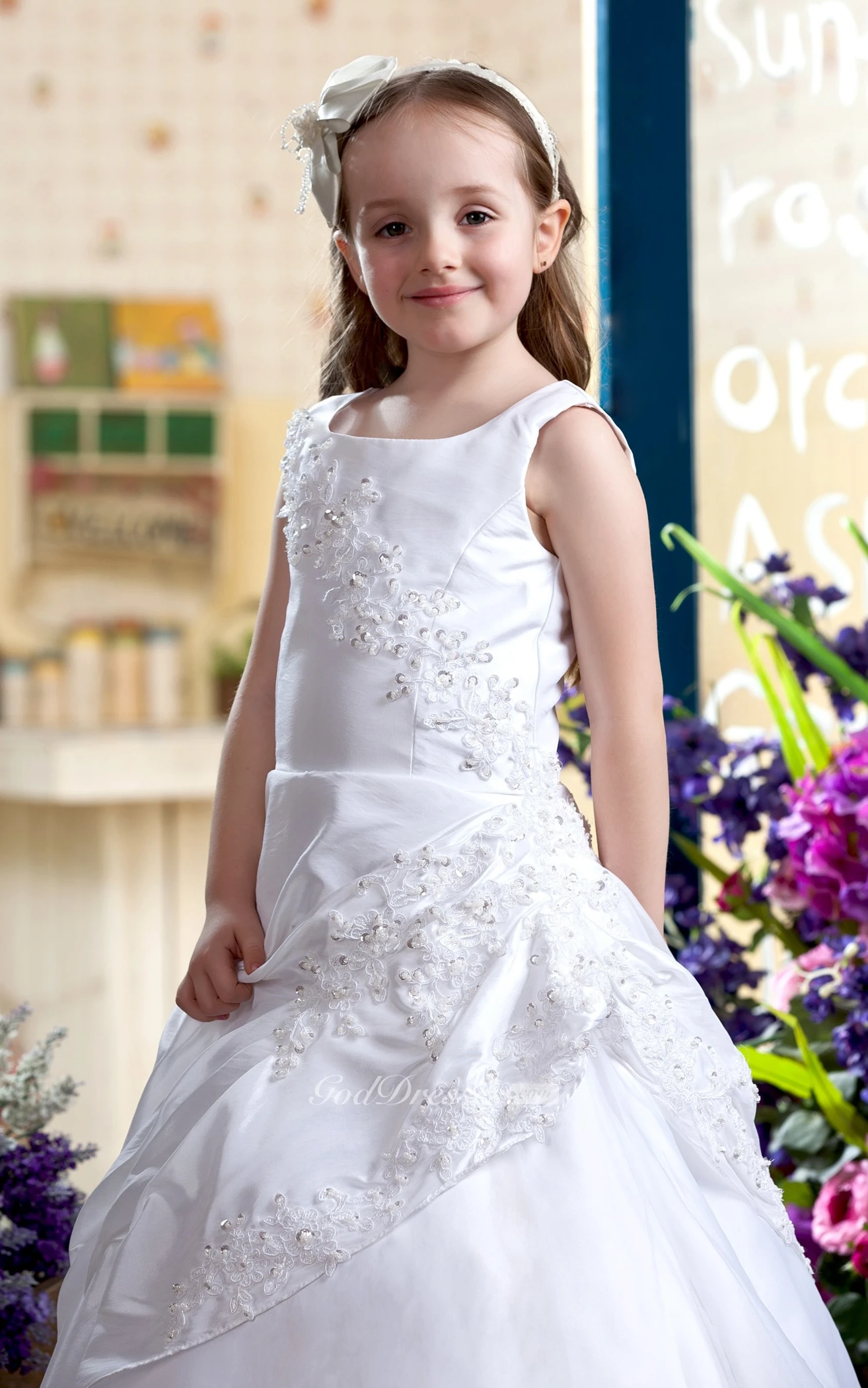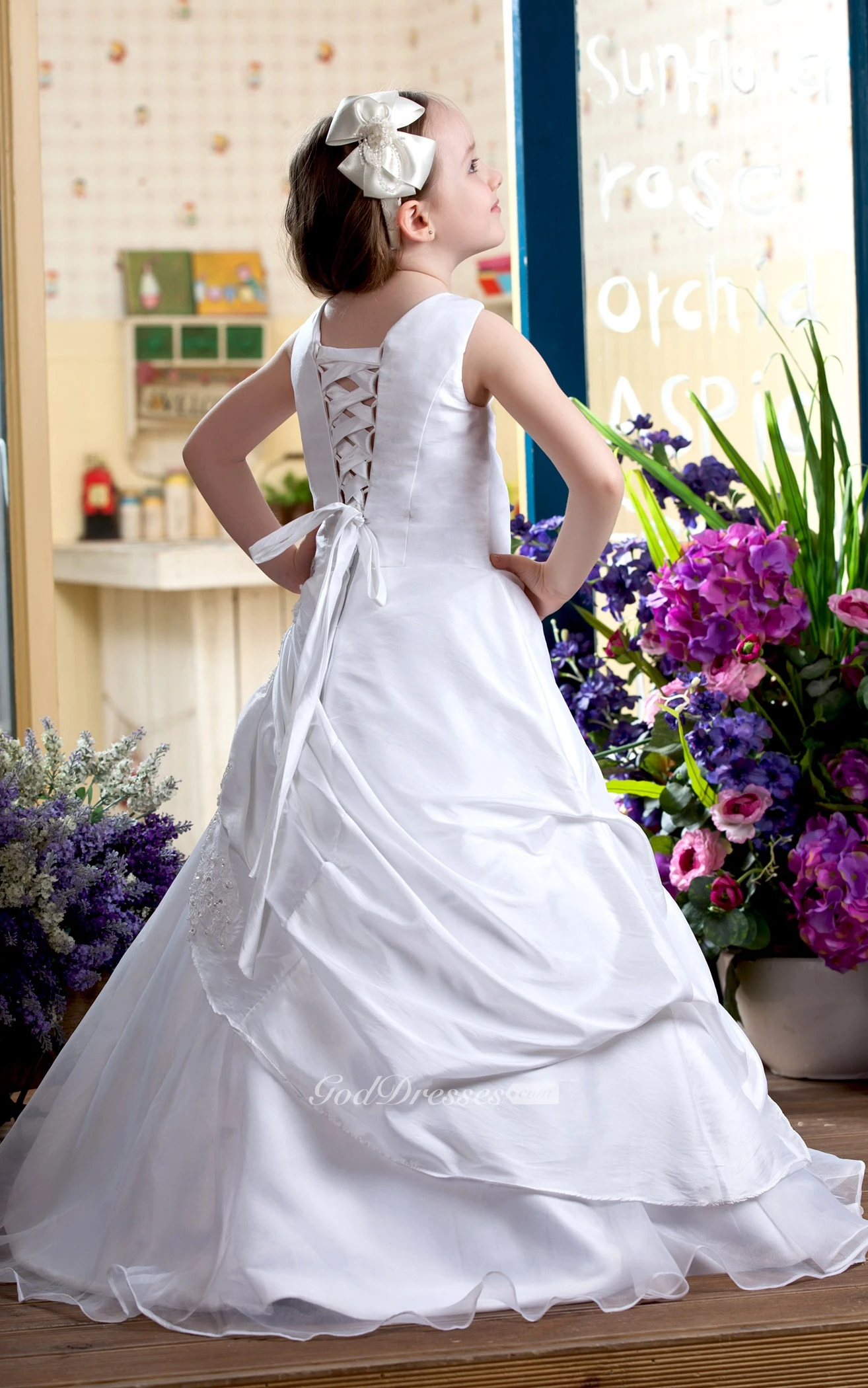 Lovely Sleeveless Appliqued Flower Girl Dress With Corset Back
