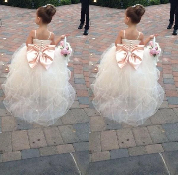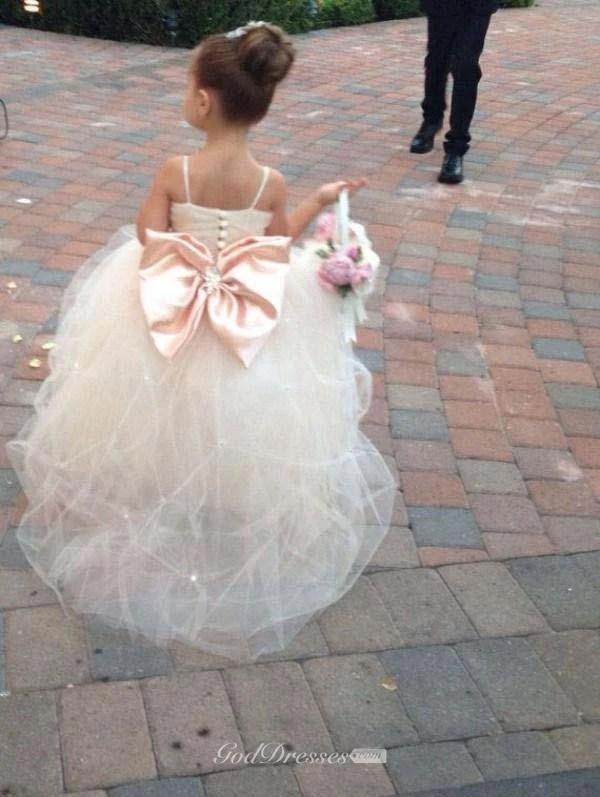 Lovely Spaghetti Strap Tulle Princess Flower Girl Dress Bowknot