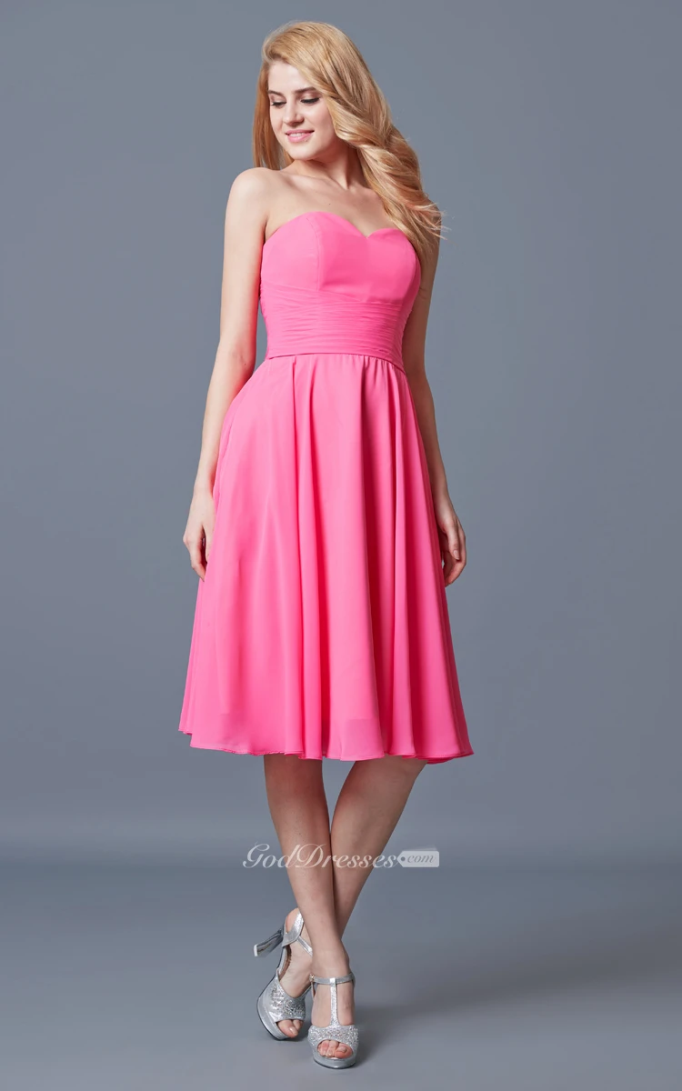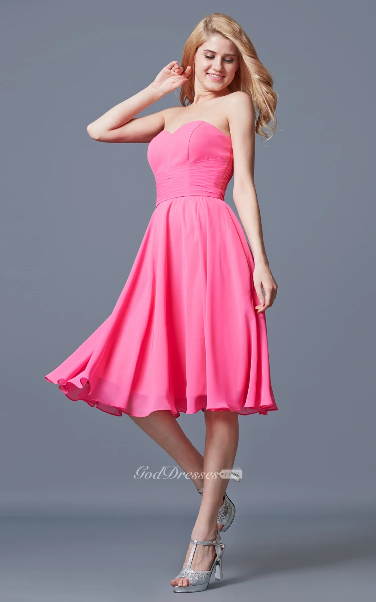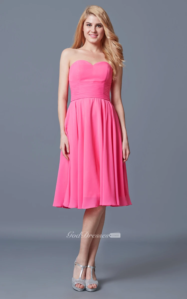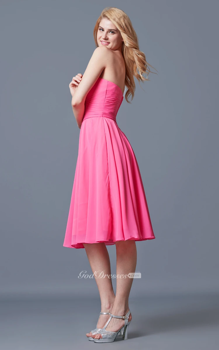 Lovely Strapless Ruched A-line Short Chiffon Dress