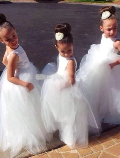 Lovely Tulle Princess Jewel Flower Girl Dress Floor-length