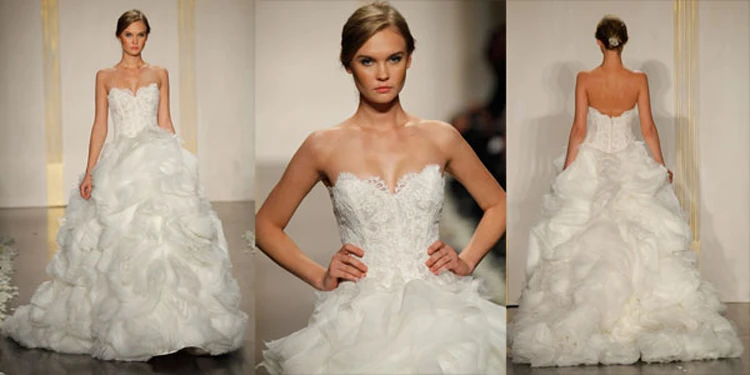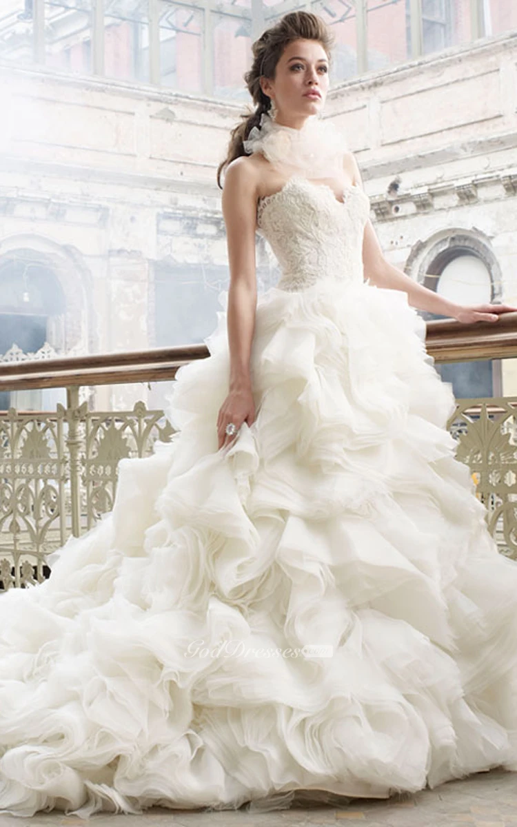 Luxurious Lace Bodice Organza Ruffle Dress With Sweetheart Neckline