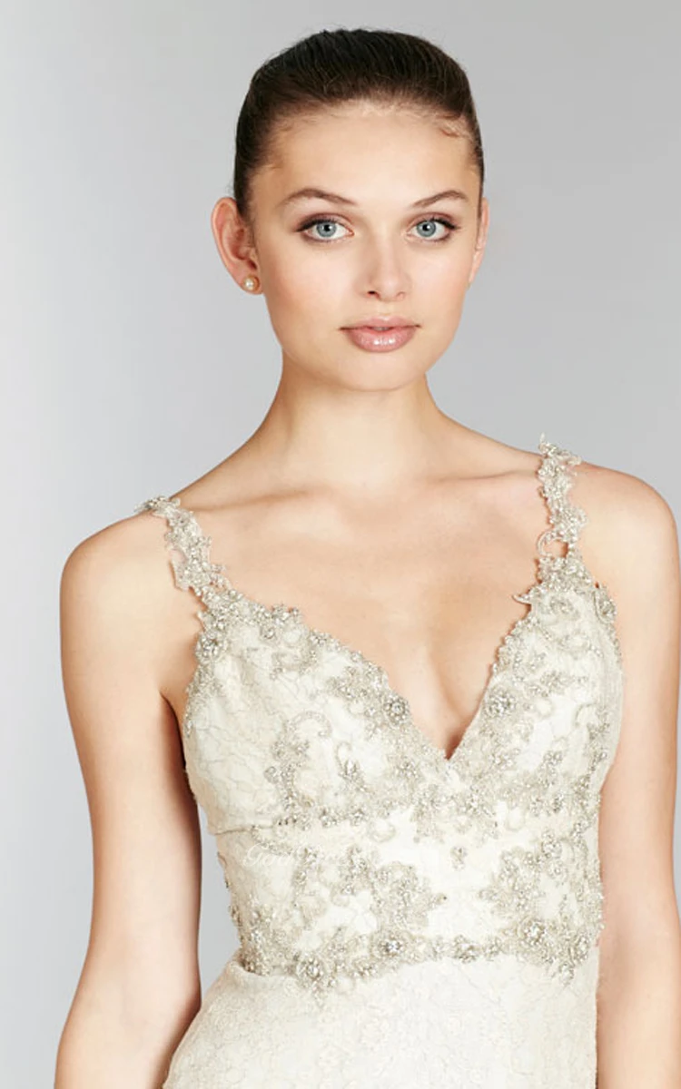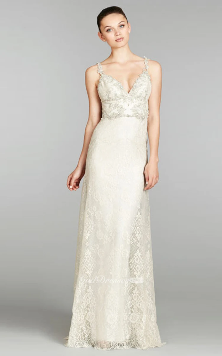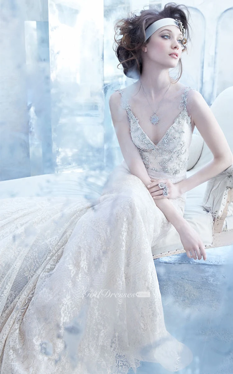Luxurious Sleeveless V-Neck Lace Dress with Crystal Detailing
