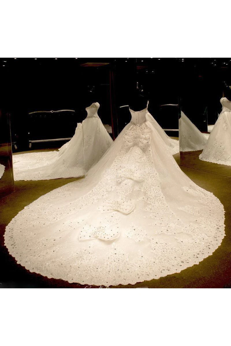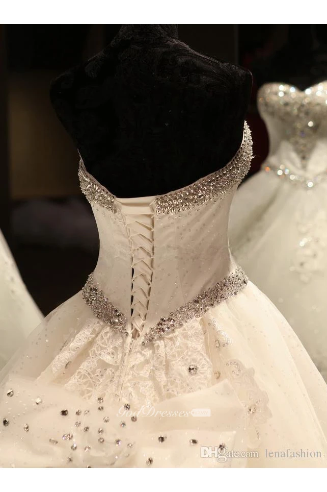 Luxurious Sweetheart Ball Gown Wedding Dress Crystal Beadings Long Train