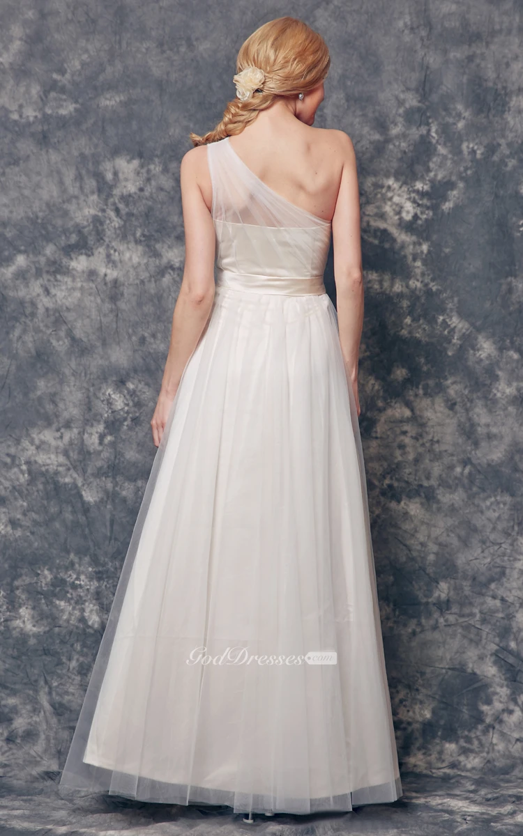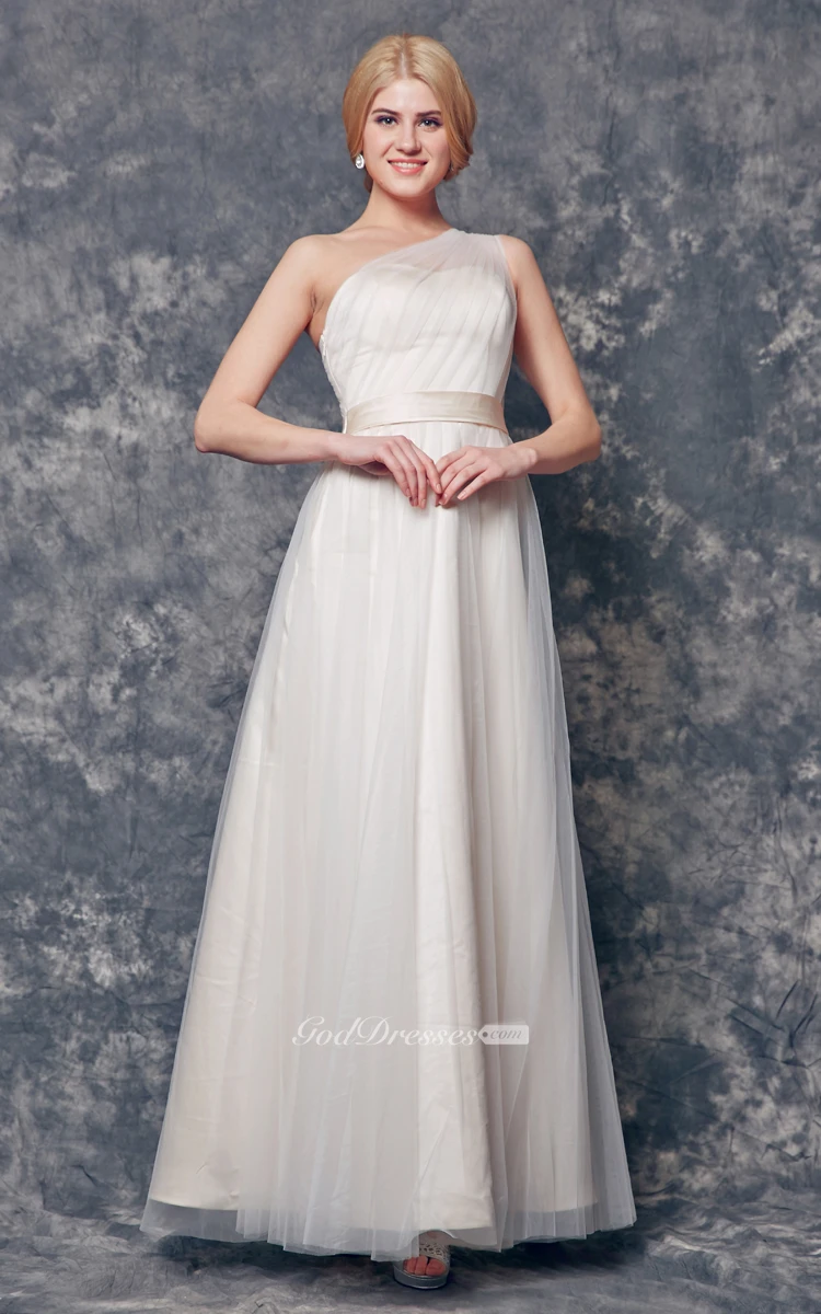 Magical One Shoulder Pleated Long Tulle Dress With Ruching