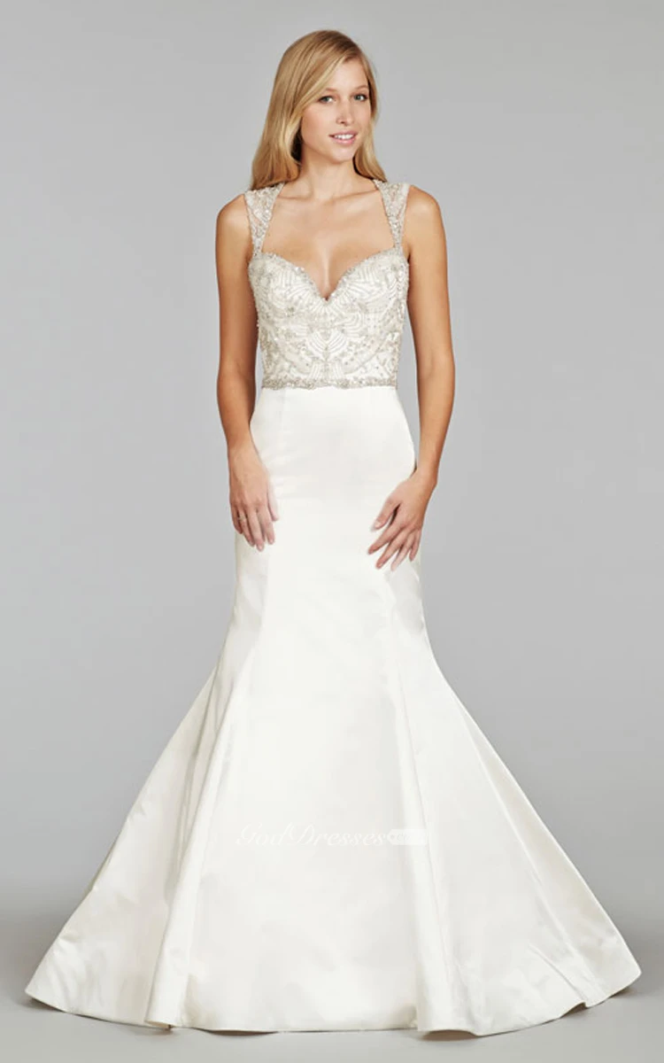 Magnificent Beaded Embroidered Bodice Satin Mermaid Dress With Keyhole Back