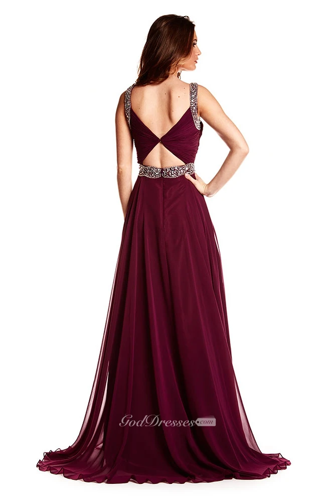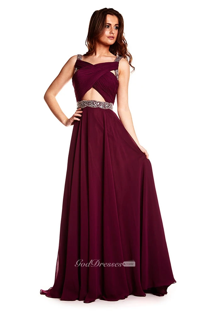 Maxi Beaded Sleeveless Strapped Chiffon Prom Dress