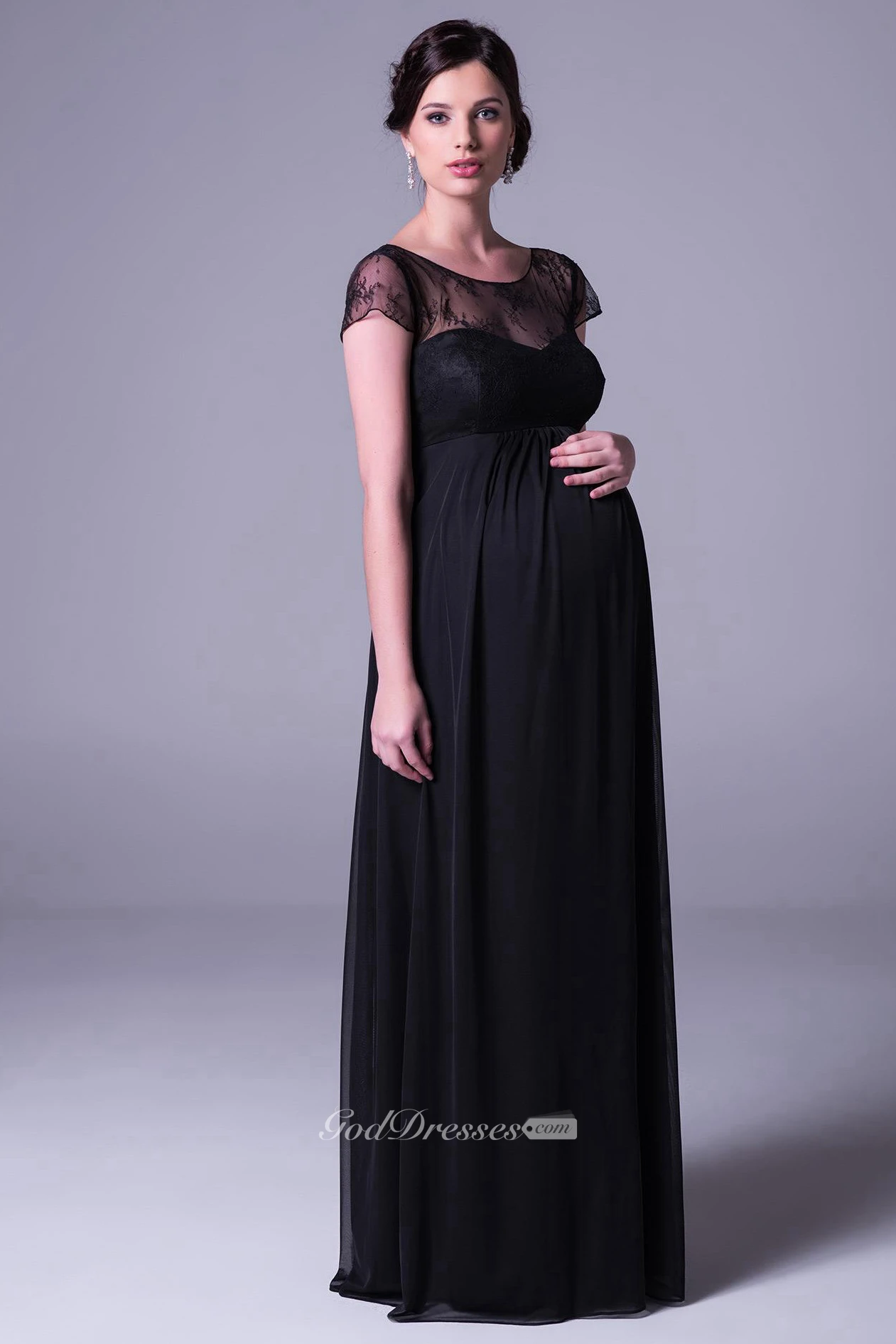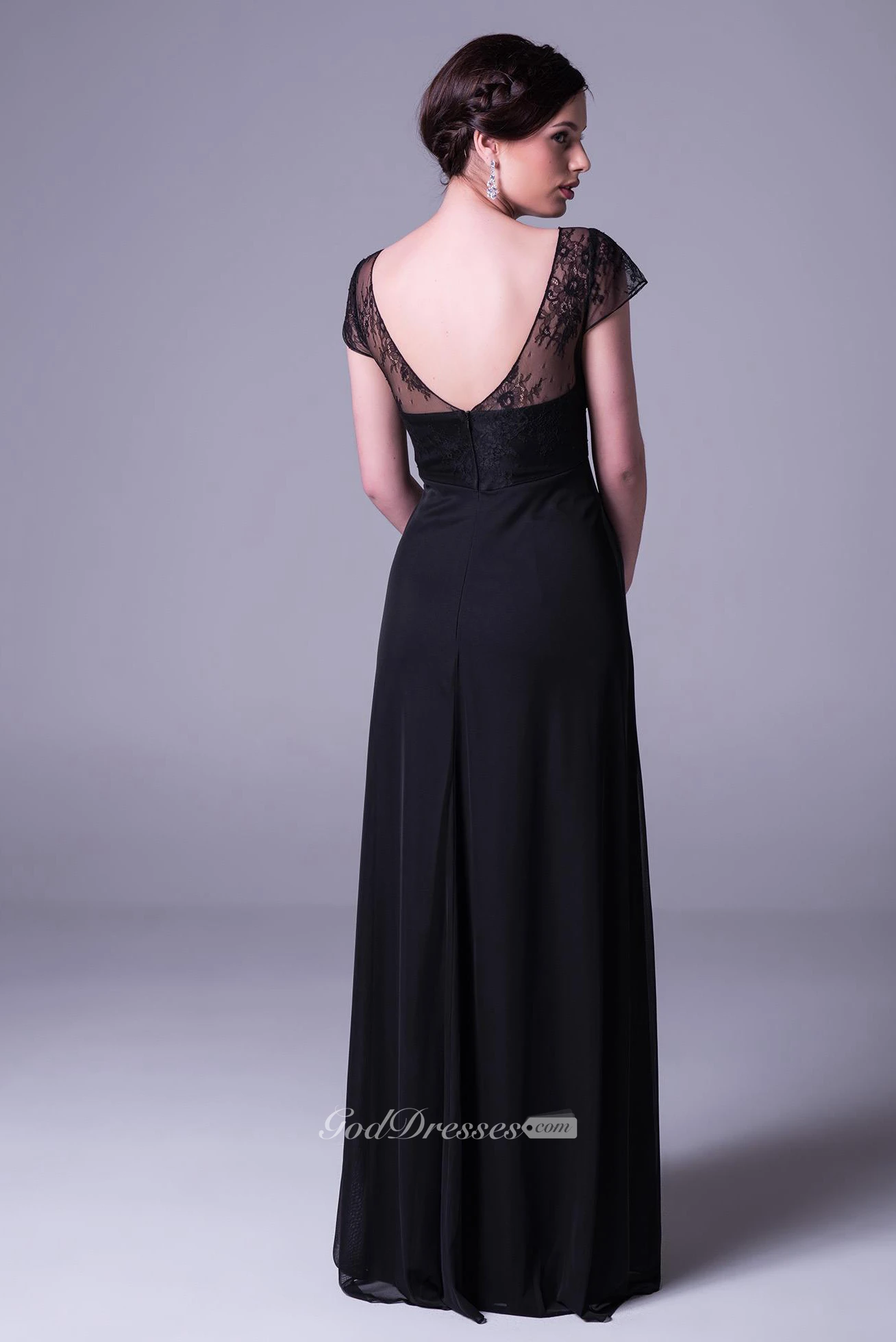 Maxi Cap Sleeve Scoop Neck Empire Lace Chiffon Bridesmaid Dress