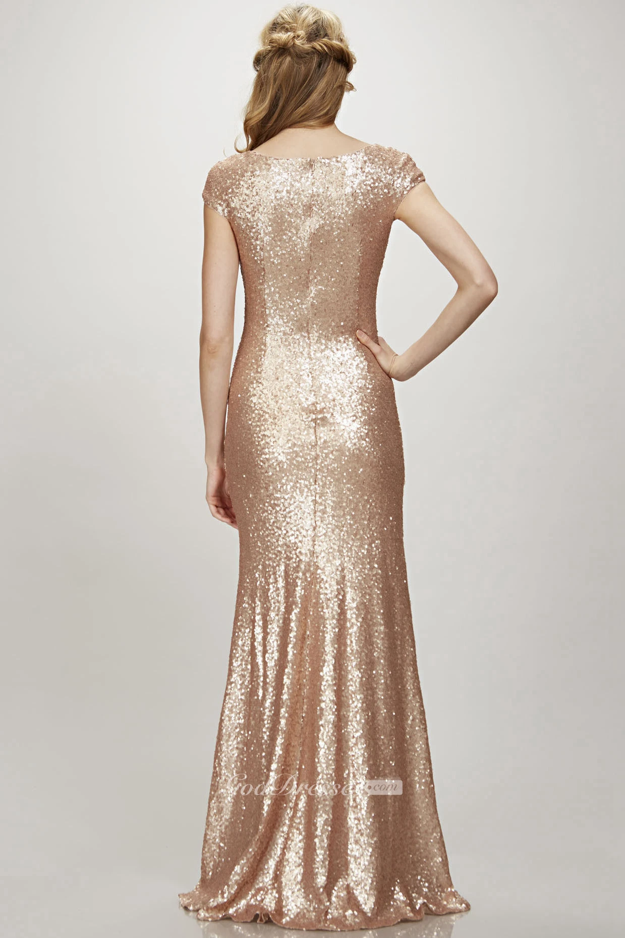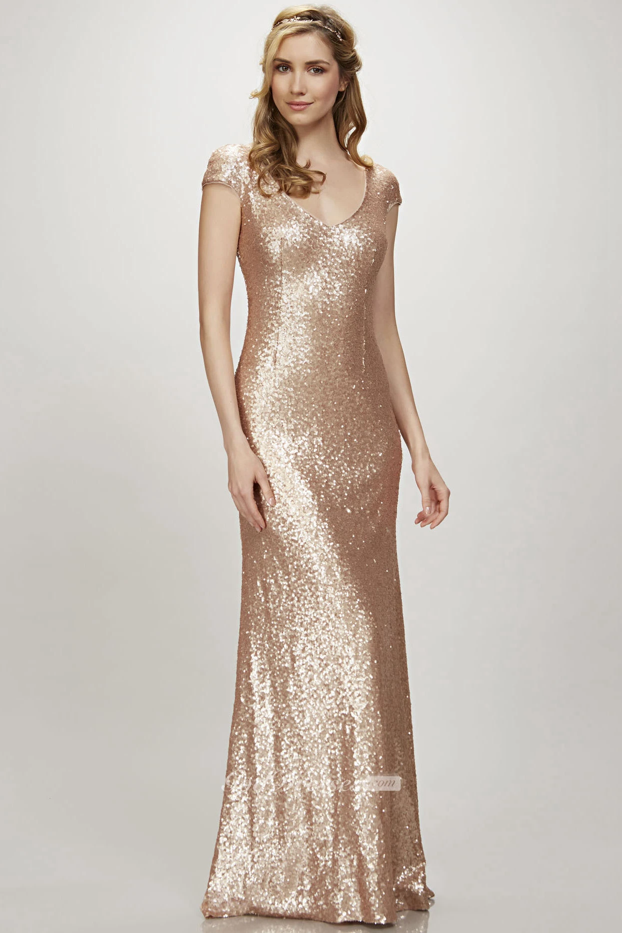 Maxi Cap Sleeve V-Neck Sequin Bridesmaid Dress