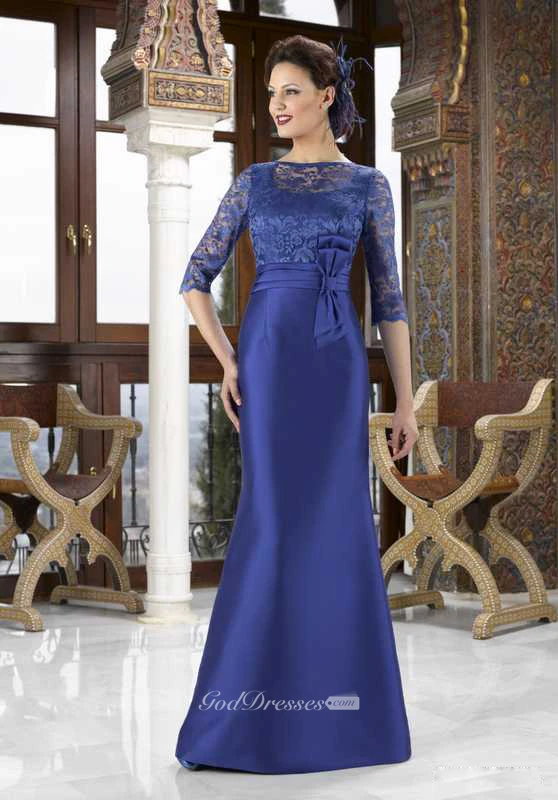 Maxi Jewel Neck Lace 3-4 Sleeve Satin Mother Of The Bride Dress With Bow