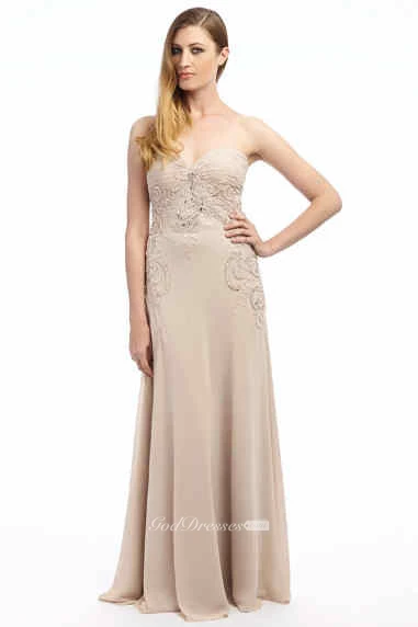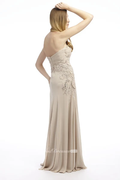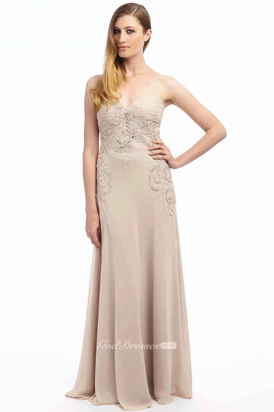 Maxi Ruched Sleeveless Sweetheart Chiffon Prom Dress With Appliques