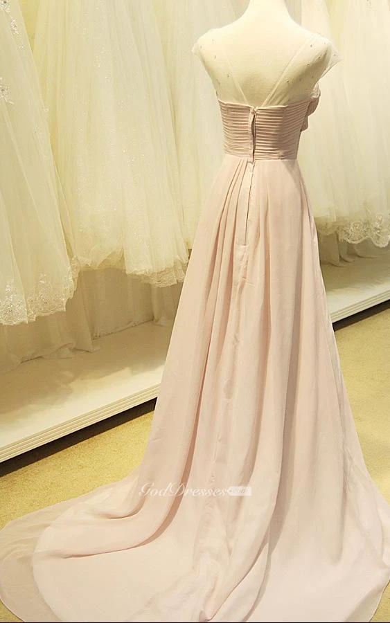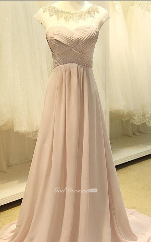 Maxi Scoop Ruched Keyhole Chiffon Dress with Beadings