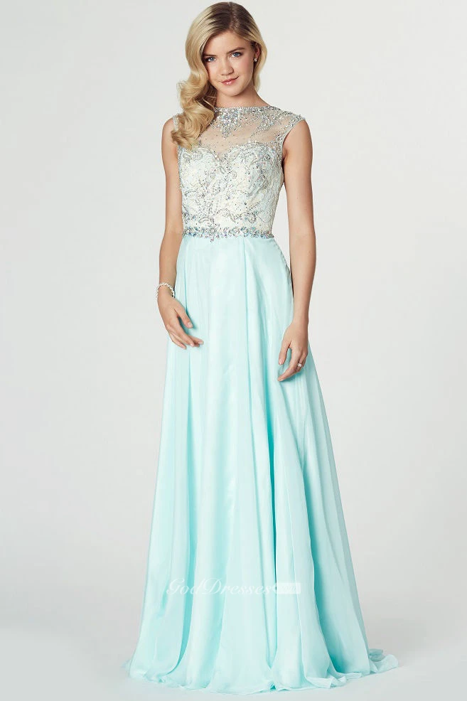 Maxi Sleeveless Beaded Jewel Neck Chiffon Prom Dress