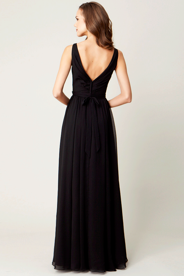Maxi Sleeveless Ruched V-Neck Chiffon Bridesmaid Dress With Bow