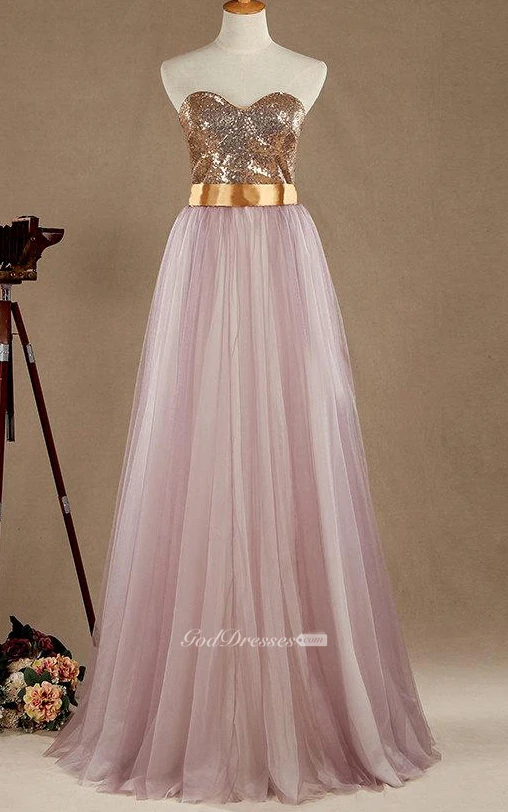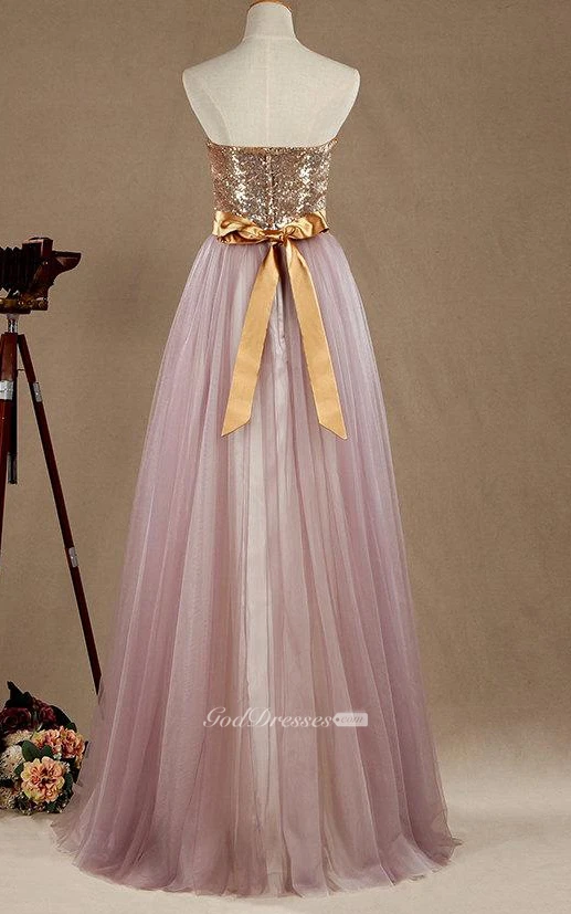 Maxi Strapped Sweetheart Tulle&Satin Dress With Sequins