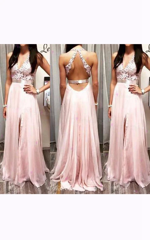 Maxi V-neck Keyhole Chiffon Lace Dress with Appliques
