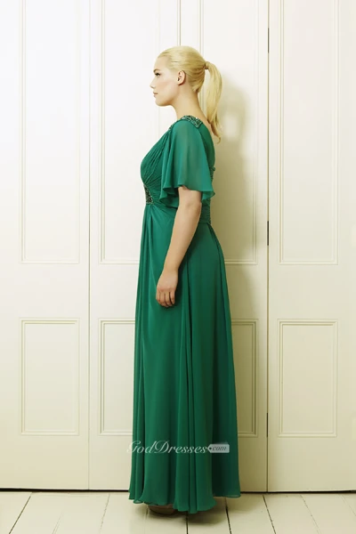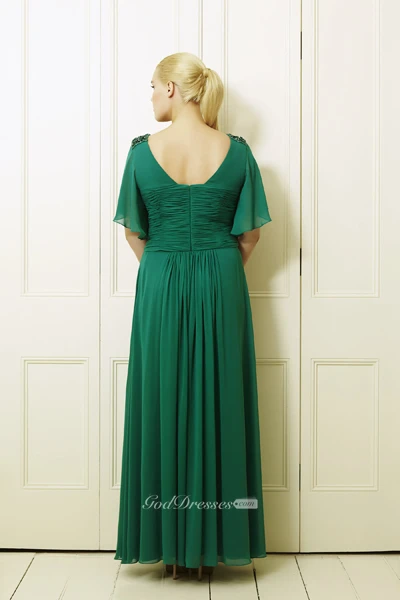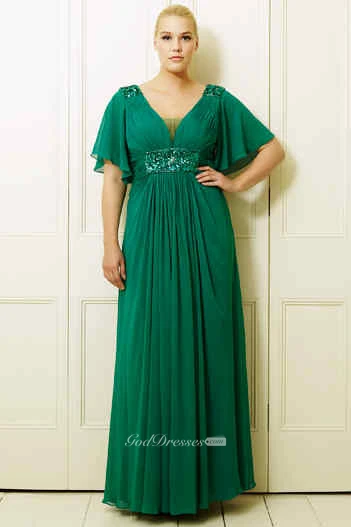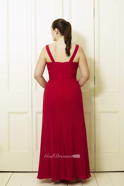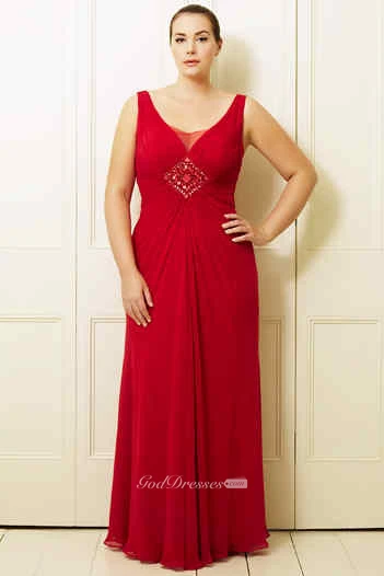 Maxi V-Neck Sleeveless Ruched Chiffon Plus Size Prom Dress With Broach