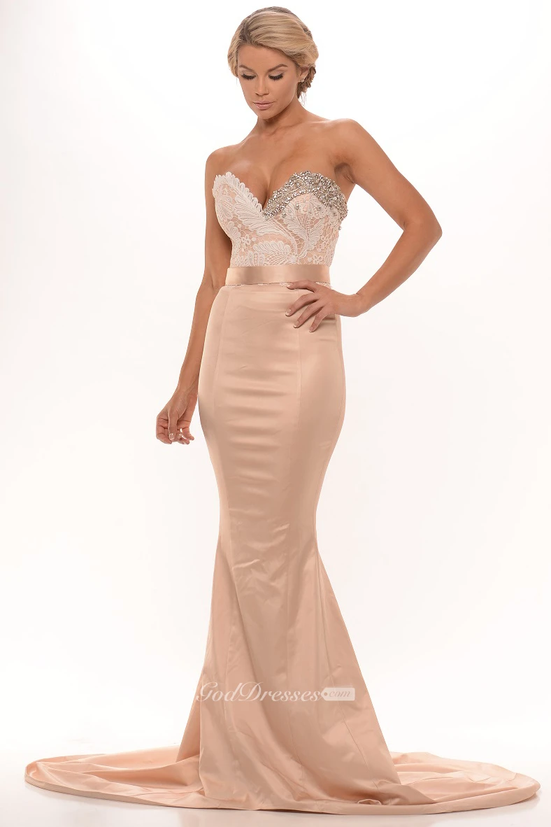 Mermaid Beaded Sleeveless Floor-Length Sweetheart Satin Prom Dress With Backless Style And Appliques