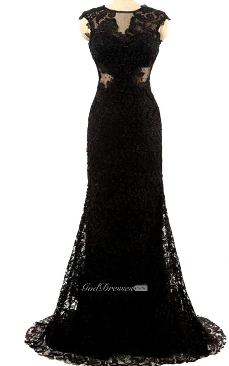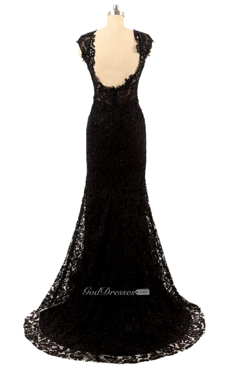 Mermaid Cap-sleeve Lace Dress With Open Back