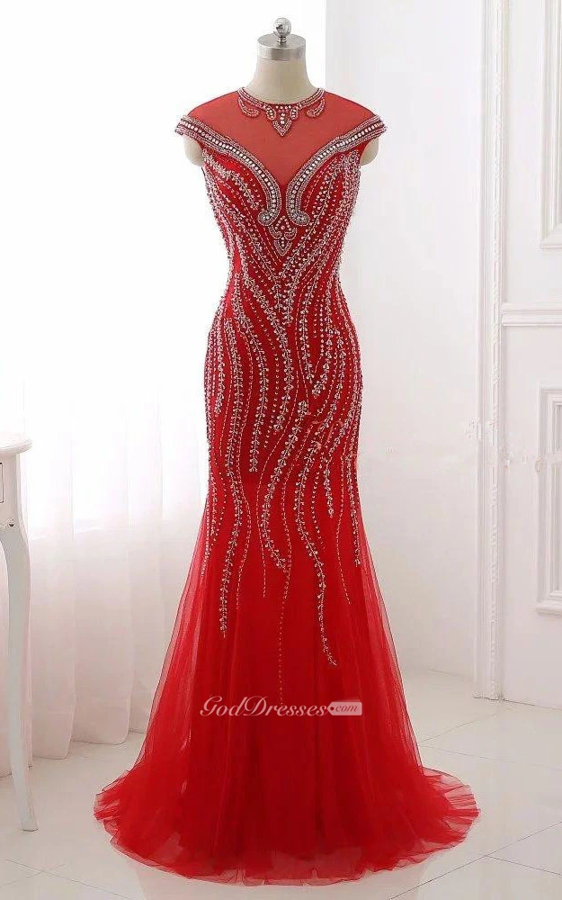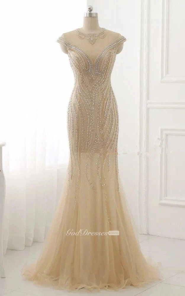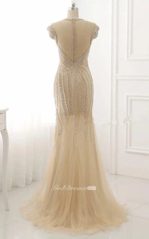 Mermaid Cap Sleeve Tulle Dress With Sequins