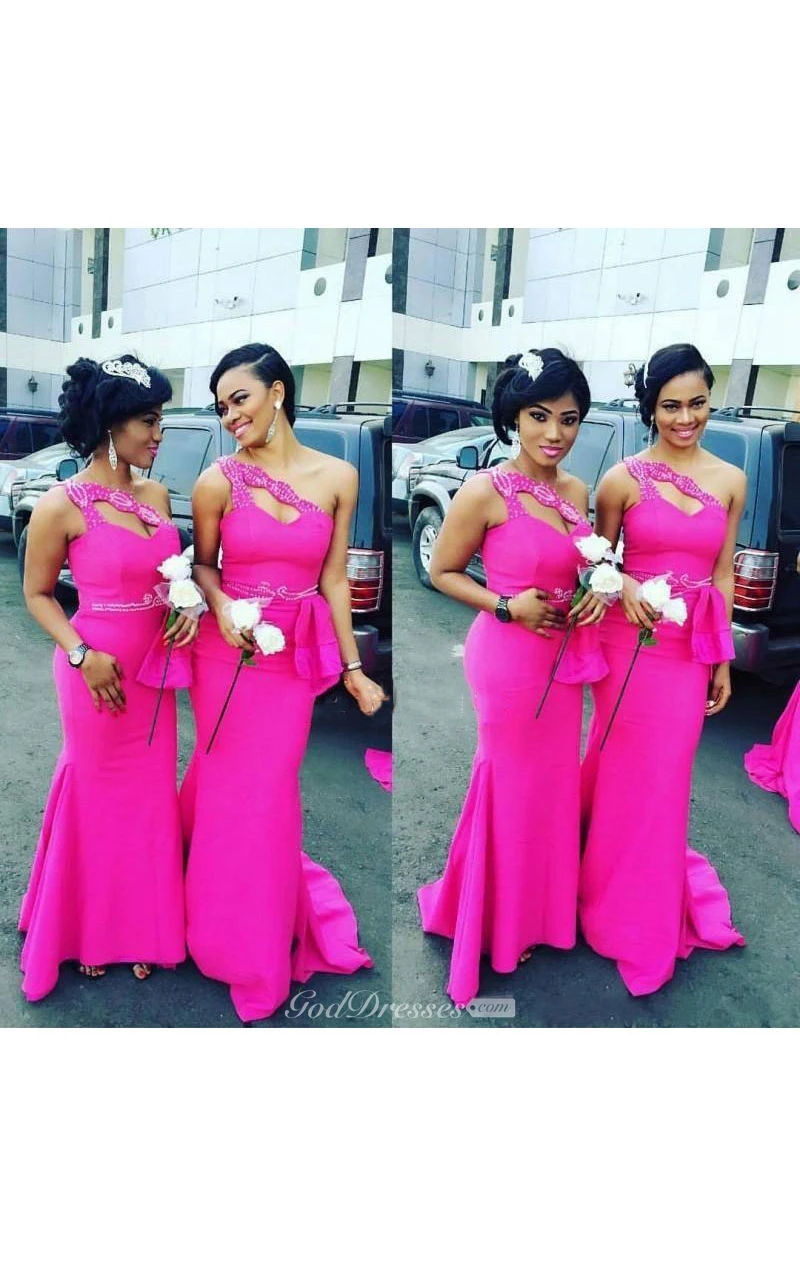 Mermaid Floor-length One-shoulder Scalloped Sleeveless Keyhole Sequins Satin Dress