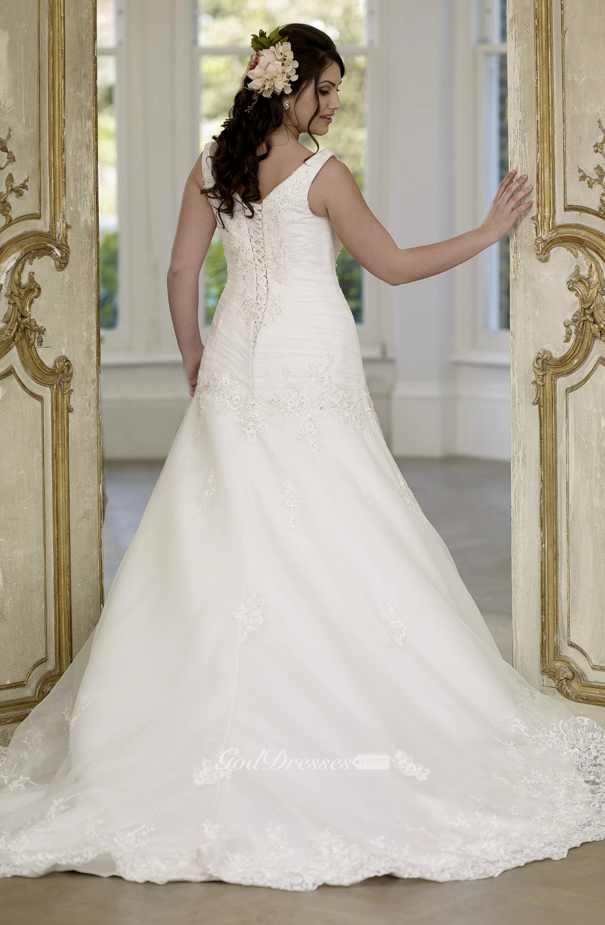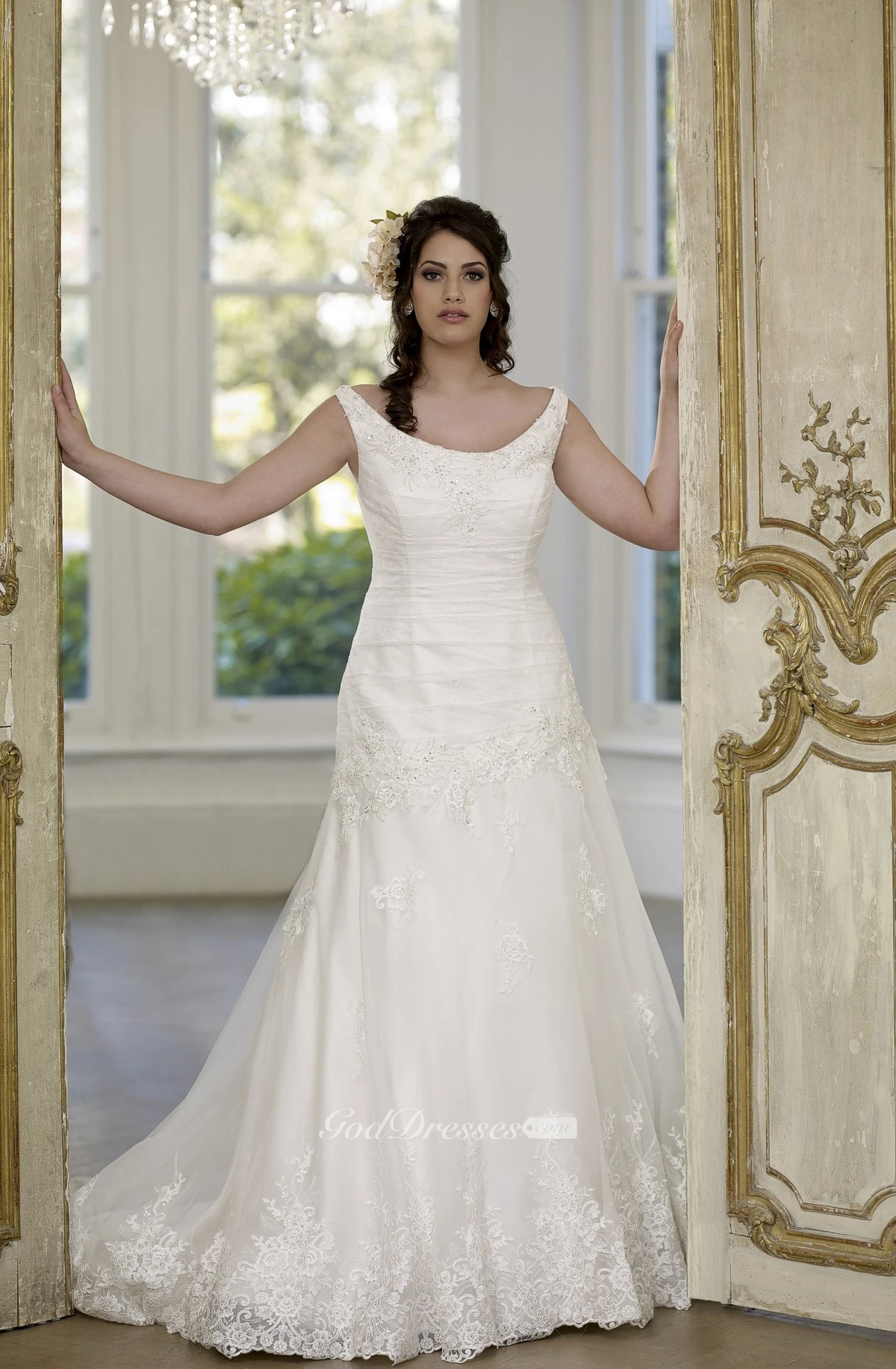 Mermaid Floor-Length Scoop Neck Sleeveless Satin Court Train Lace-Up Back Appliques Dress