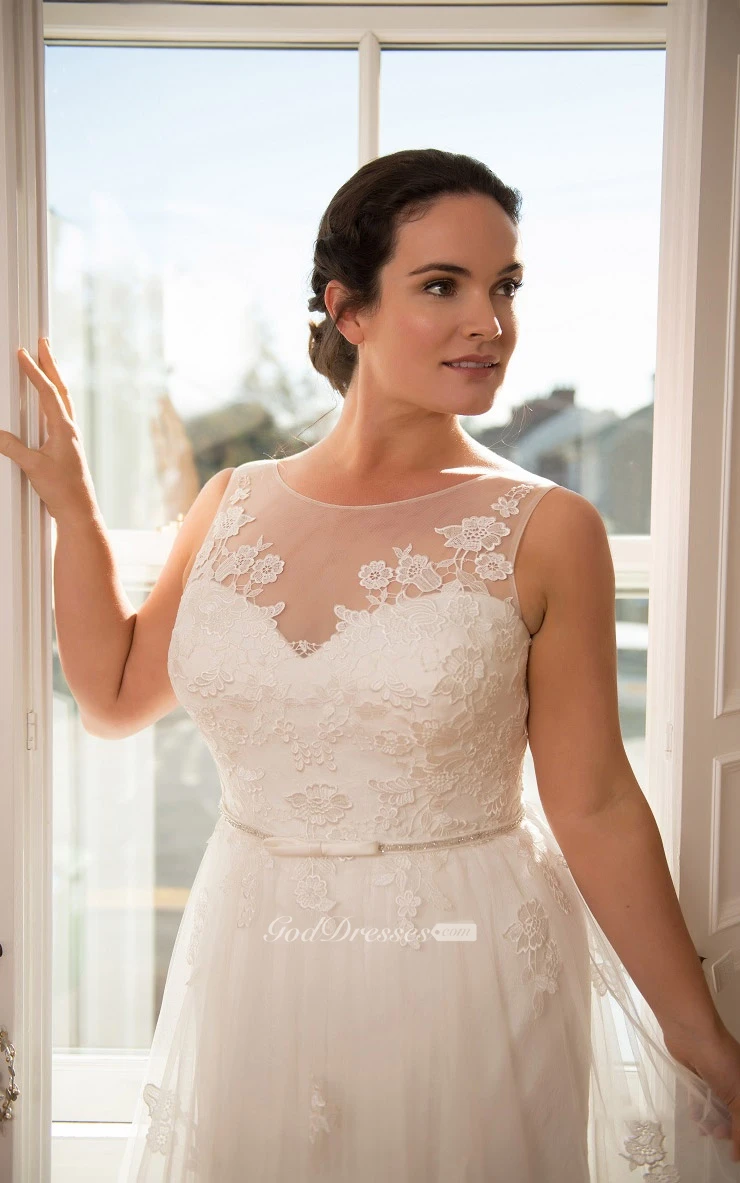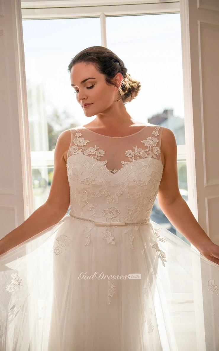 Mermaid Floor-Length Scoop Neck Sleeveless Tulle Appliques Flower Court Train Low-V Back Appliques Dress