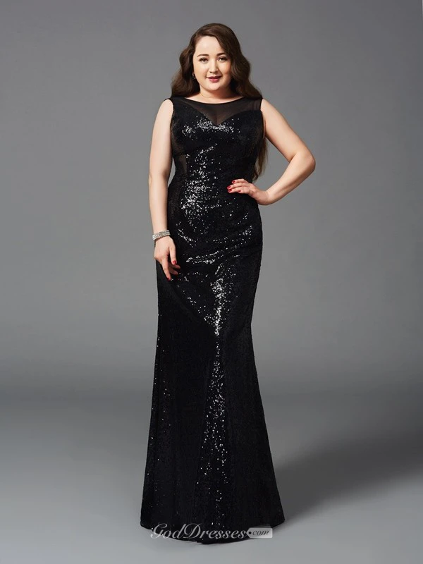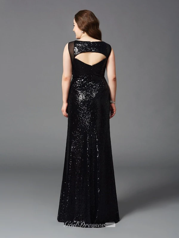 Mermaid Floor-length Scoop Sleeveless Sequins Pleats Keyhole Dress