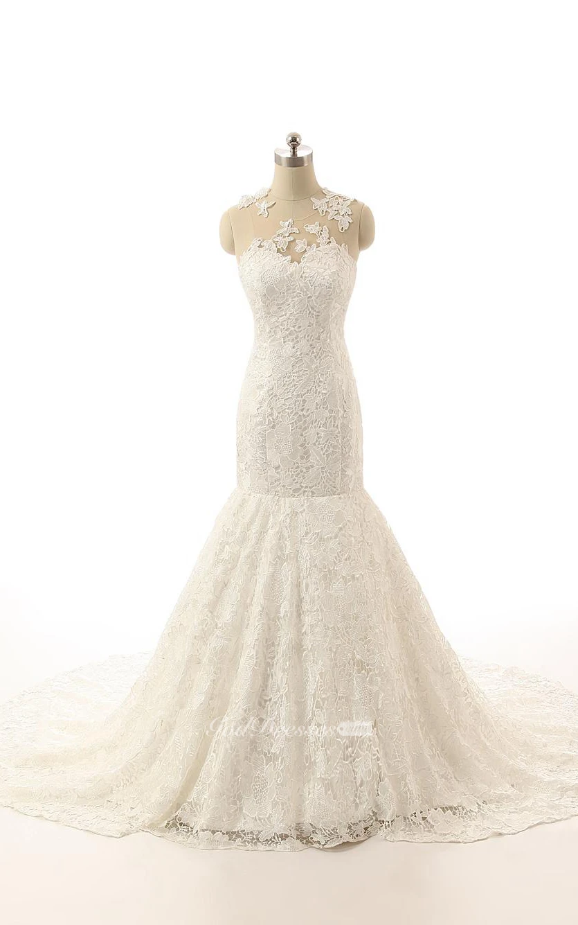 Mermaid Floor-Length Sleeveless Bell Ruffles Lace Dress