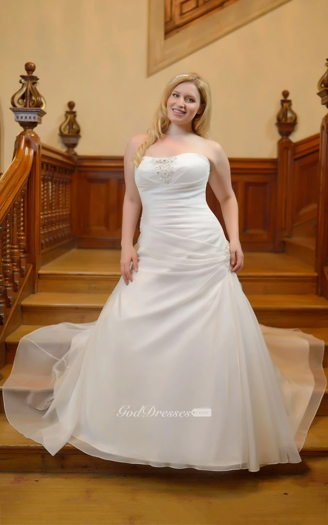 Mermaid Floor-Length Strapless Sleeveless Satin Court Train Side Draping Dress