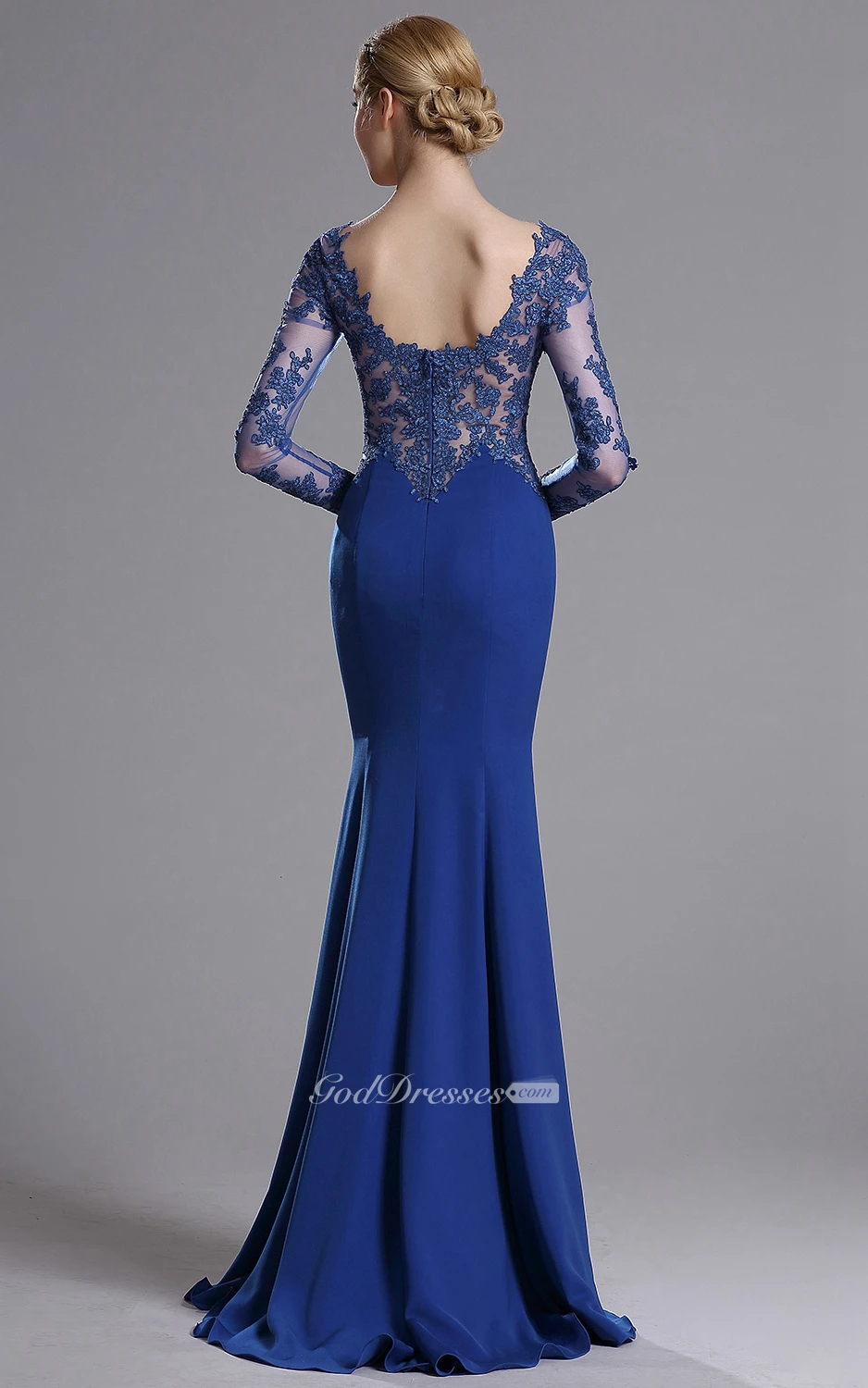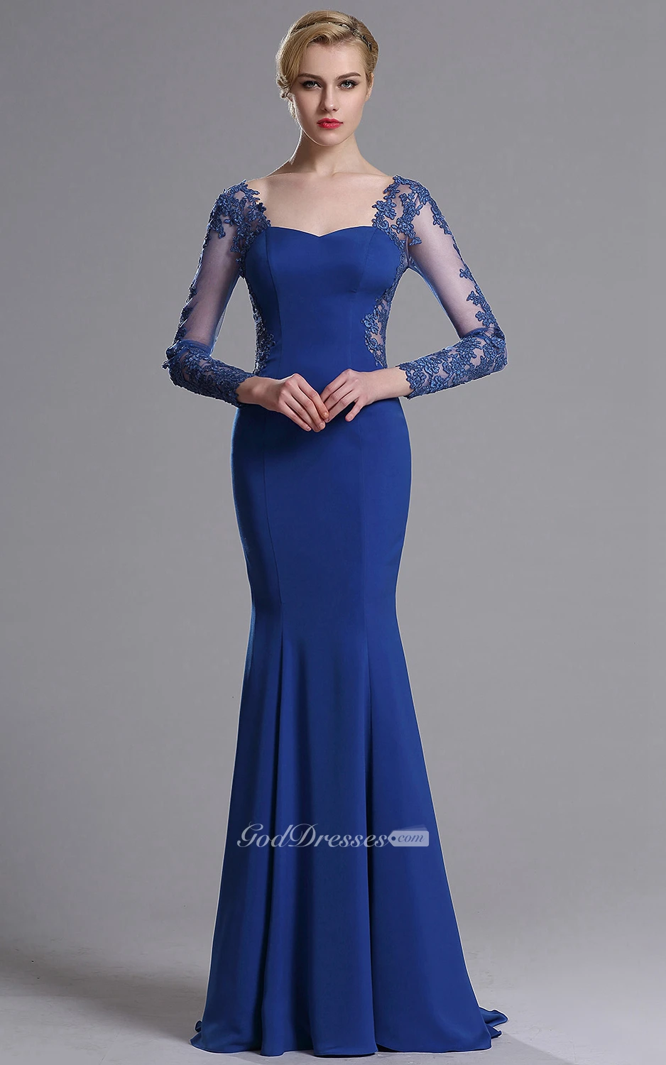 Mermaid Floor-Length Sweep Sweetheart Long Sleeve Jersey Lace Lace Zipper Dress