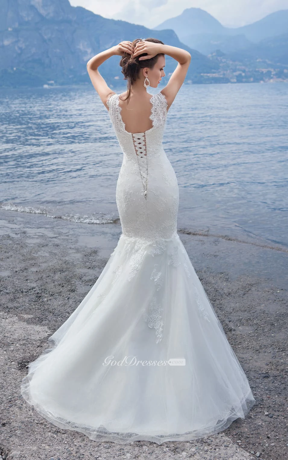 Mermaid Floor-Length Sweetheart Sleeveless Lace-Up Lace Dress With Appliques