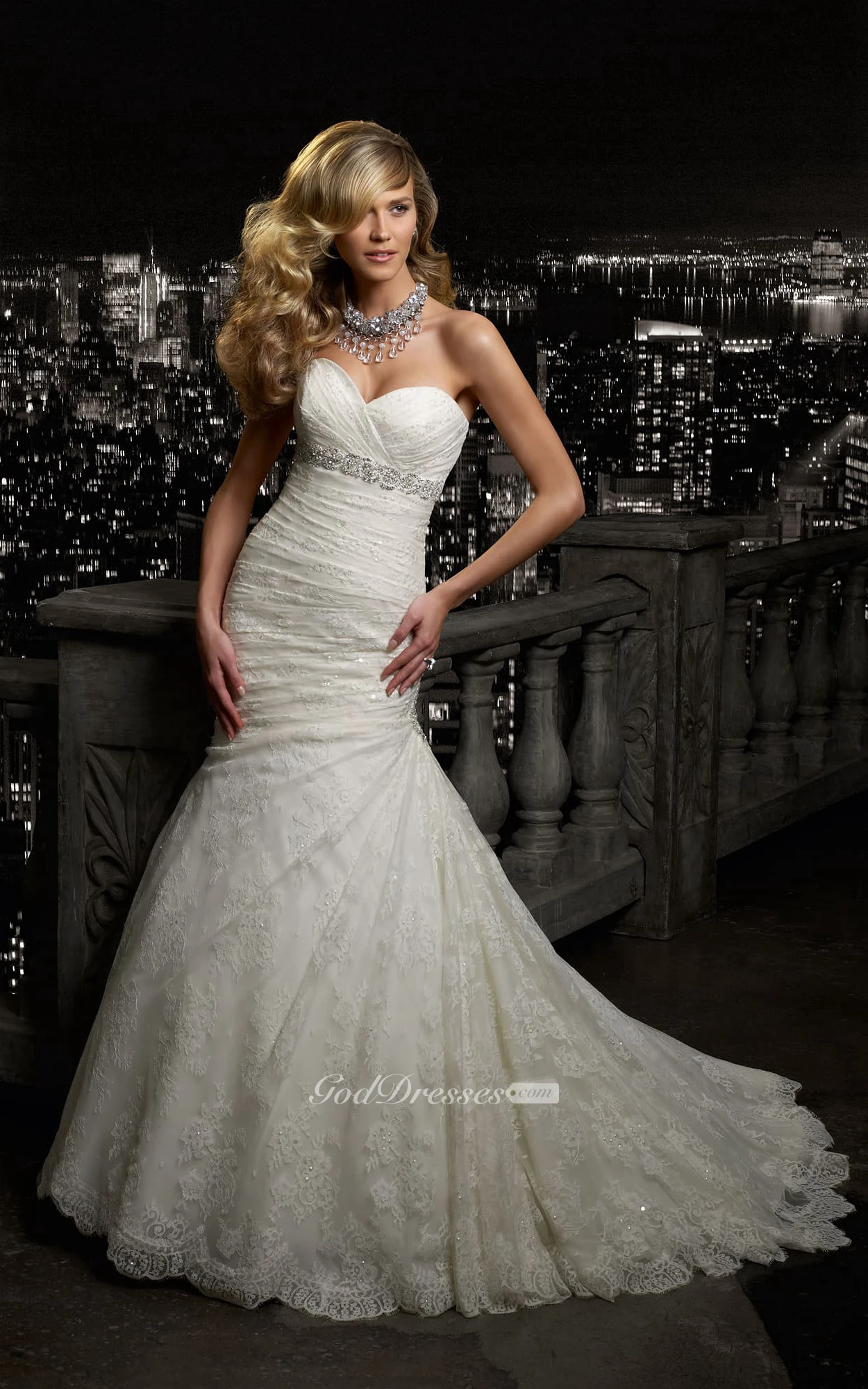 Mermaid Floor-Length Sweetheart Sleeveless Lace-Up Lace Dress With Side Draping And Beading