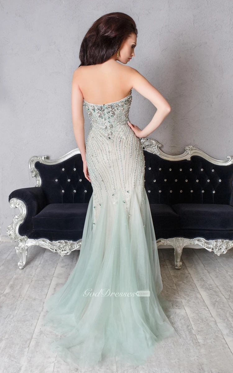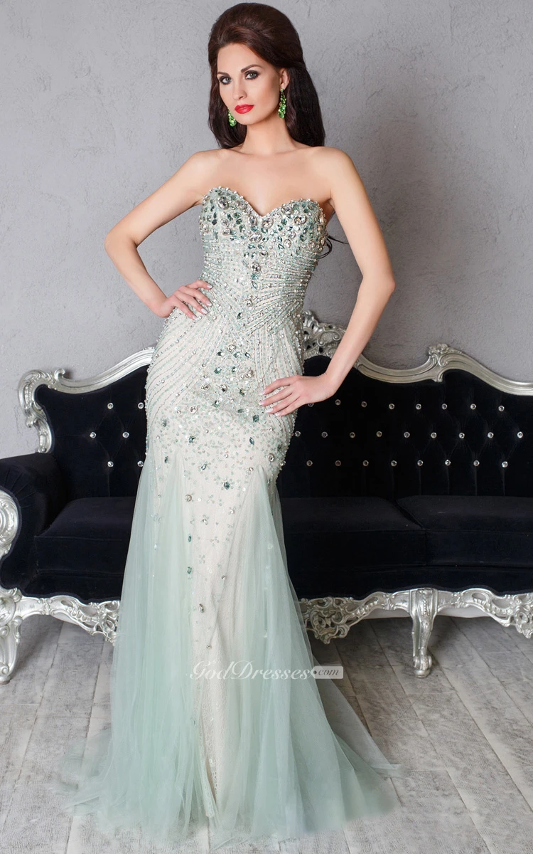 Mermaid Floor-Length Sweetheart Sleeveless Tulle Beading Pleats Zipper Dress