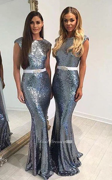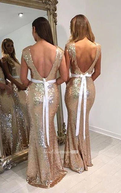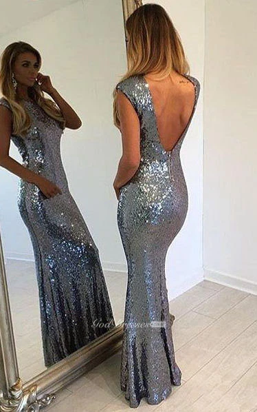 Mermaid Jewel Sleeveless Bell Cap Pleats Brush Train Backless Sequins Dress