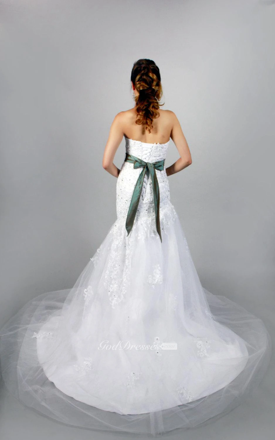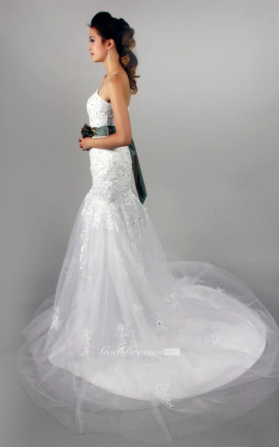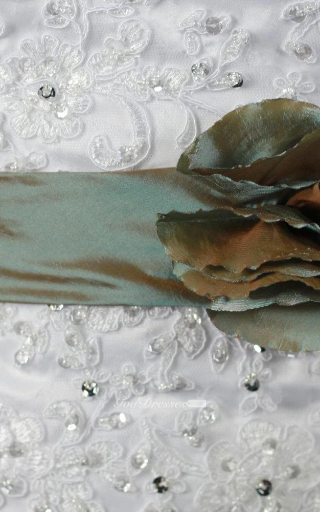Mermaid Lace and Tulle Sweetheart Dress With Beadings and Floral Sash