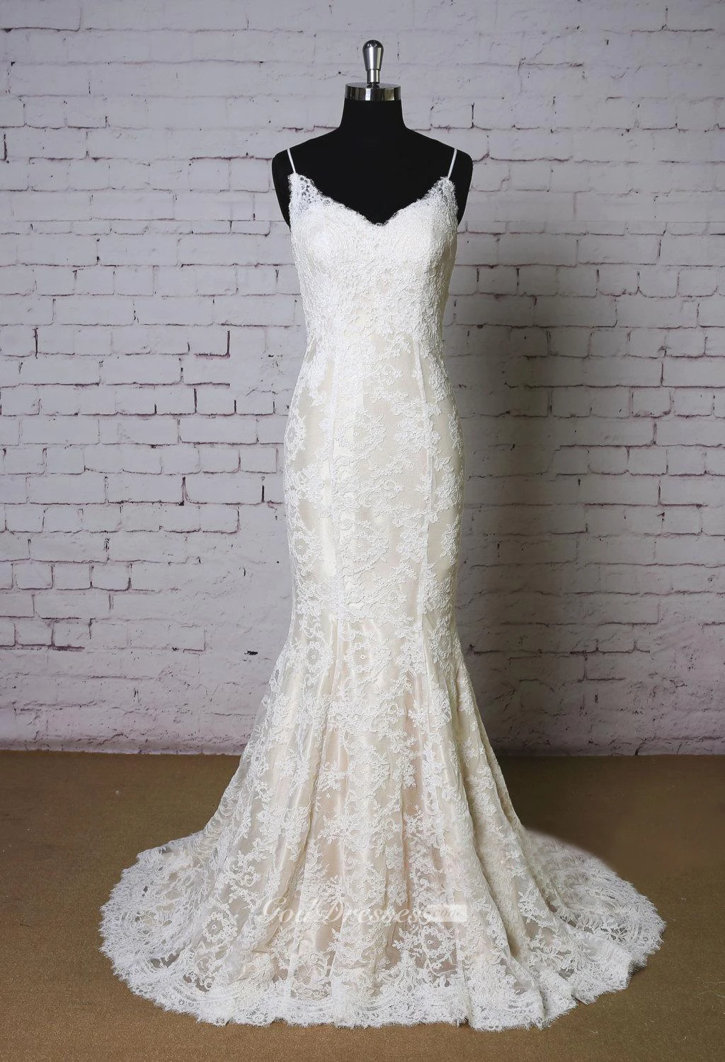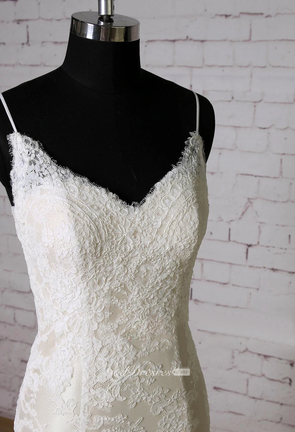 Mermaid Lace Sleeveless V-Neck Dress With Spaghetti Straps