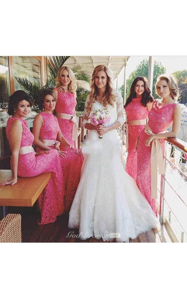 Mermaid Long Scoop Sleeveless Bell Sash Zipper Lace Dress