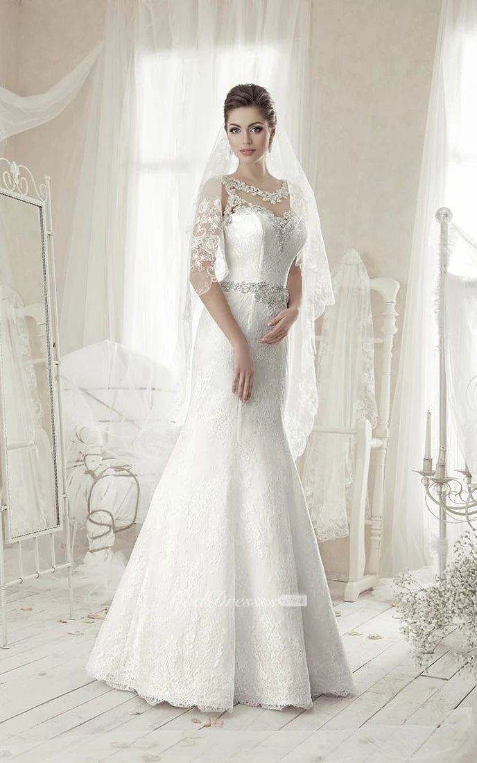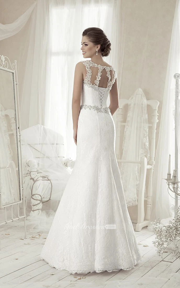 Mermaid Long Scoop Sleeveless Lace-Up Lace Dress With Crystal Detailing
