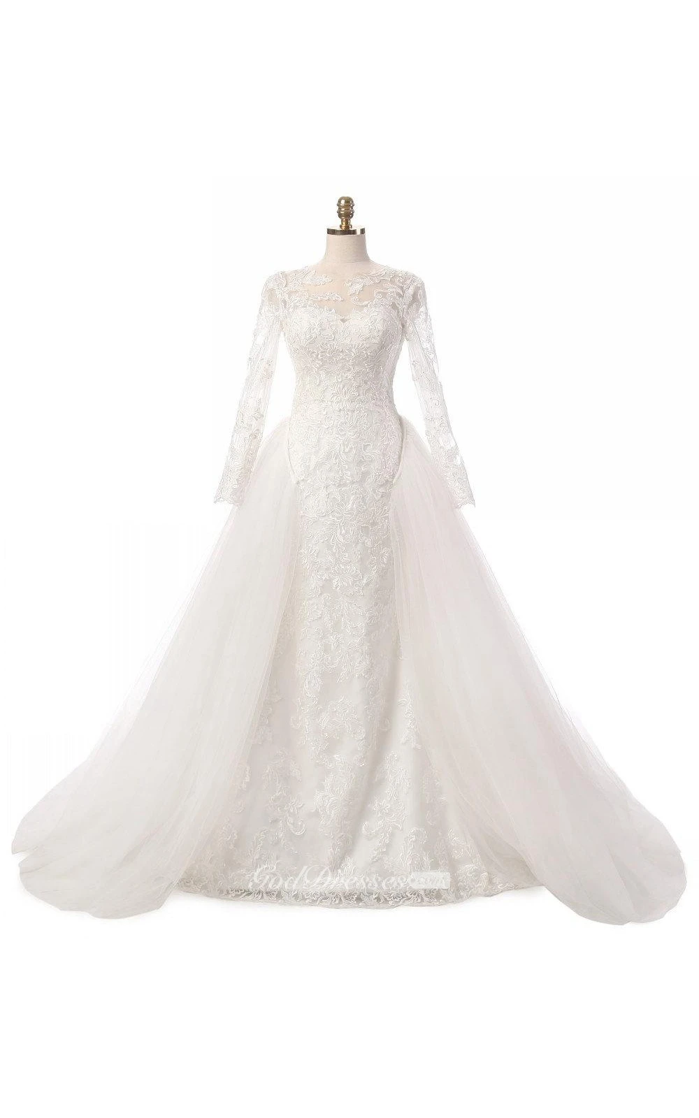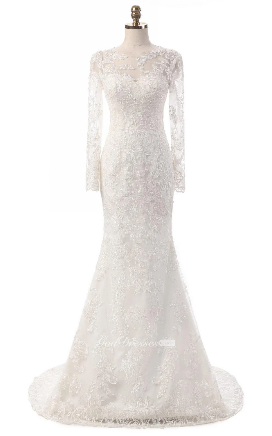 Mermaid Long Sleeve Tulle Lace Weddig Dress With Appliques
