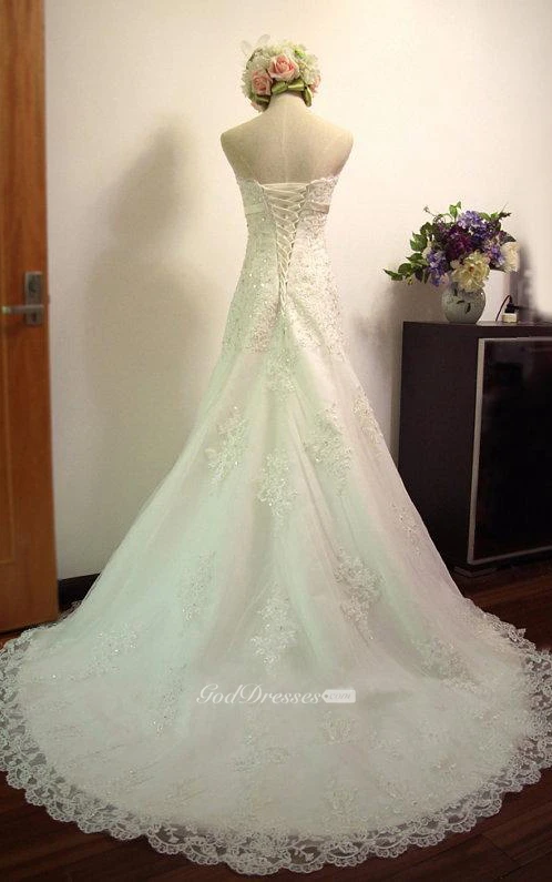 Mermaid Long Straps Cap Appliques Straps Keyhole Lace Dress