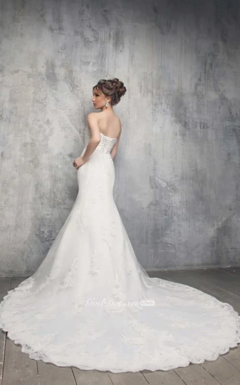 Mermaid Long Sweetheart Sleeveless Lace Dress With Appliques And Criss Cross