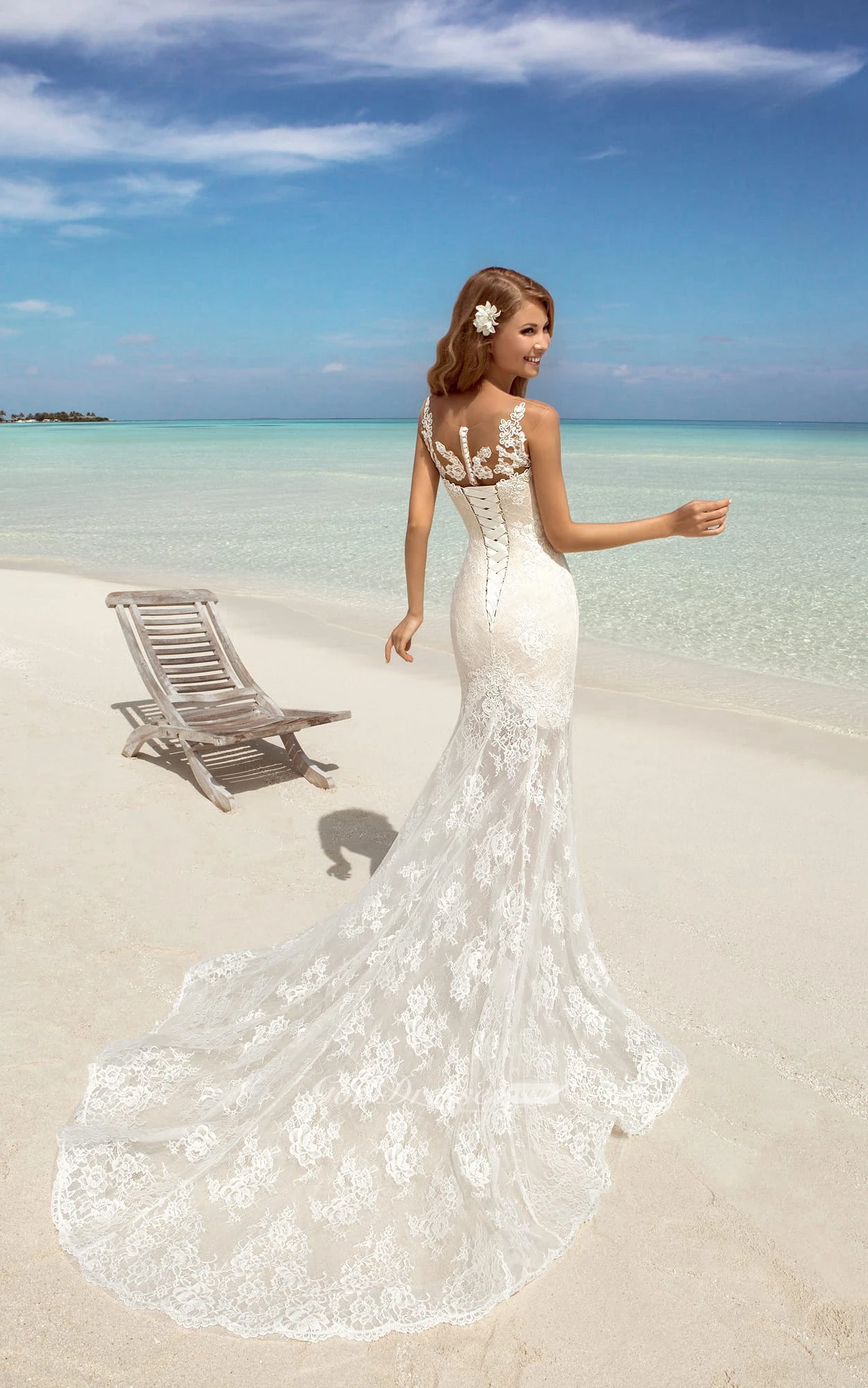 Mermaid Long Sweetheart Sleeveless Lace-Up Lace Dress Appliques