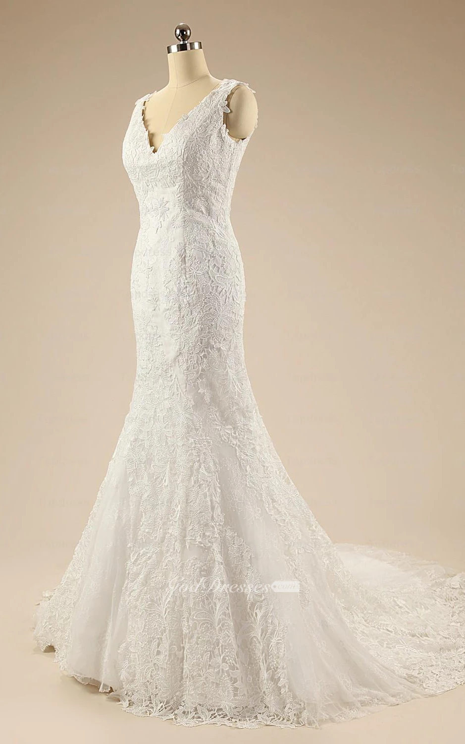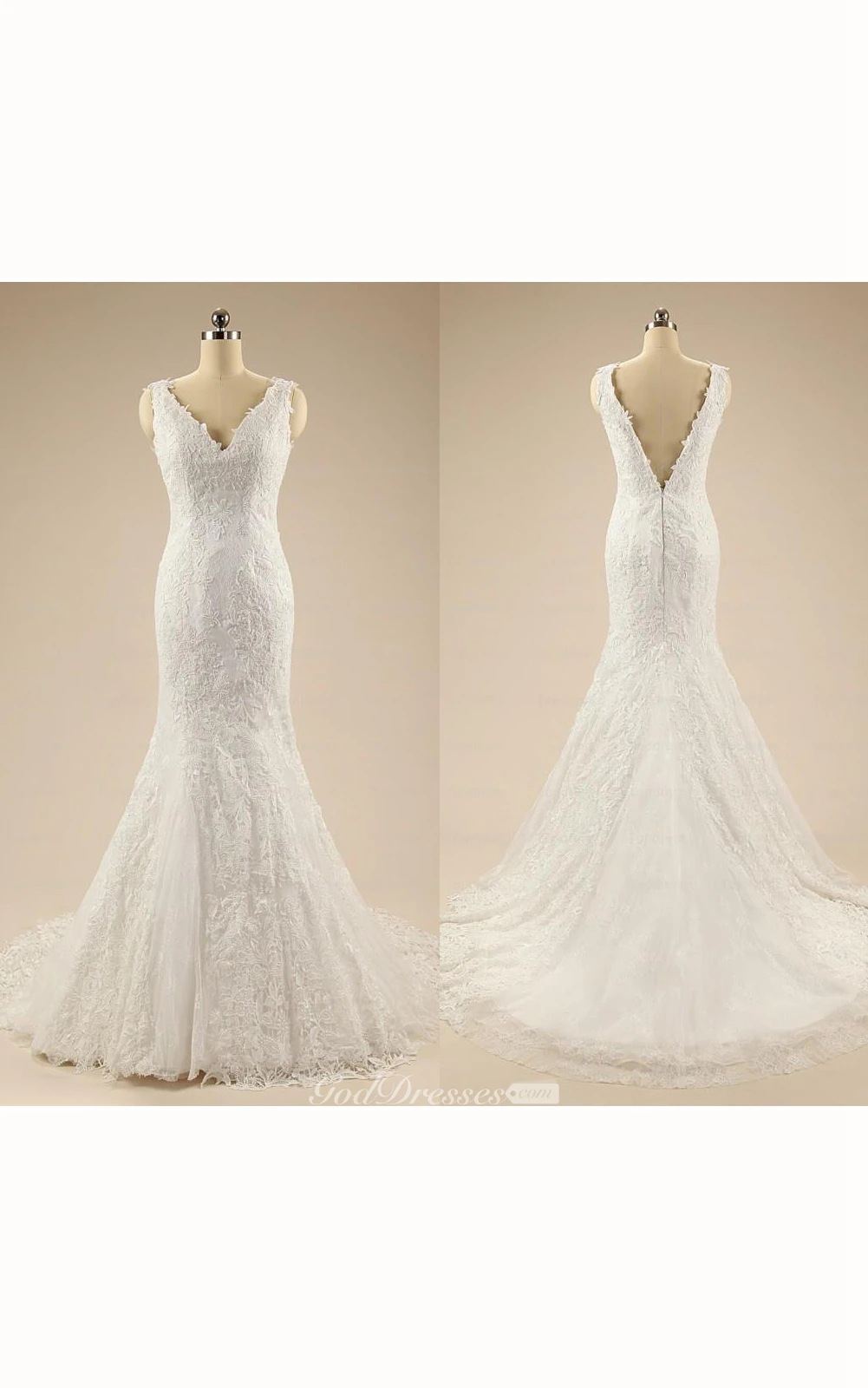 Mermaid Long V-Neck Court Train Backless Lace Dress