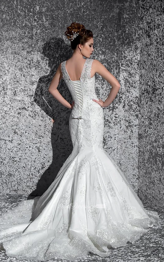 Mermaid Maxi V-Neck Sleeveless Lace-Up Lace Dress With Beading