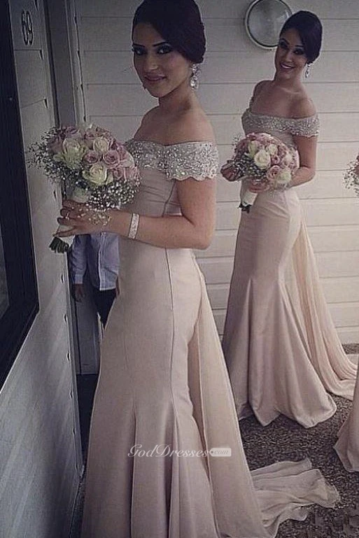 Mermaid Off-the-shoulder Beading Appliques Split Front Dress