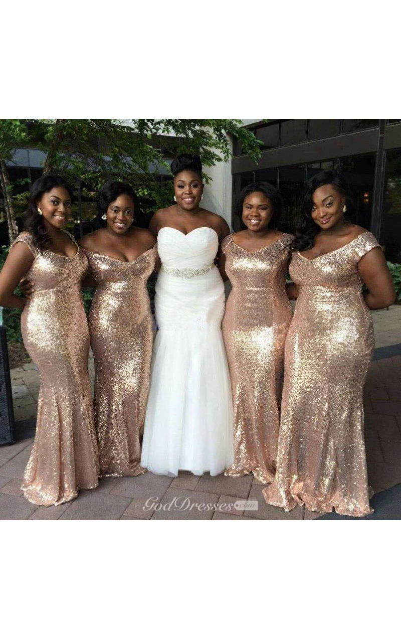 Mermaid Off-the-shoulder Long Sequins Dress with Pleats