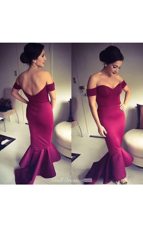 Mermaid Off-the-shoulder Sleeveless Satin Dress with Low V-back