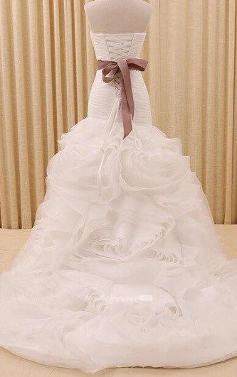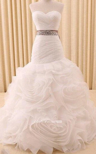 Mermaid Organza Sweetheart Dress With Ruffles and Beaded Waist