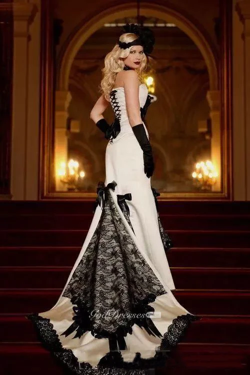 Mermaid Satin Lace Sweetheart Sleeveless Floor-length Court Train Wedding Dress with Bow