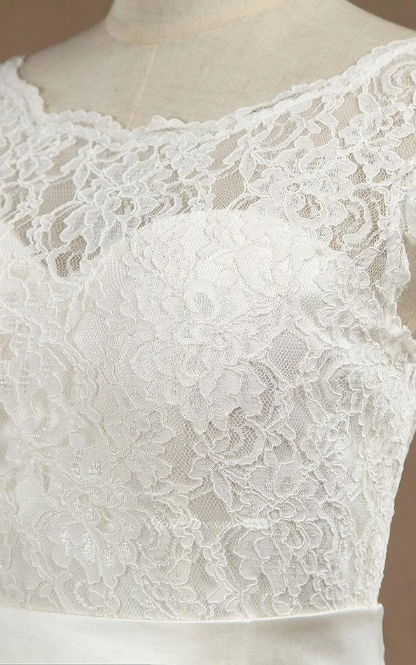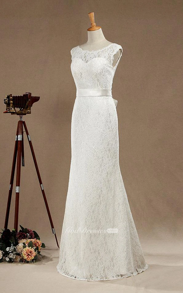 Mermaid Scoop Neck Cap Sleeve Lace Dress With Satin Sash